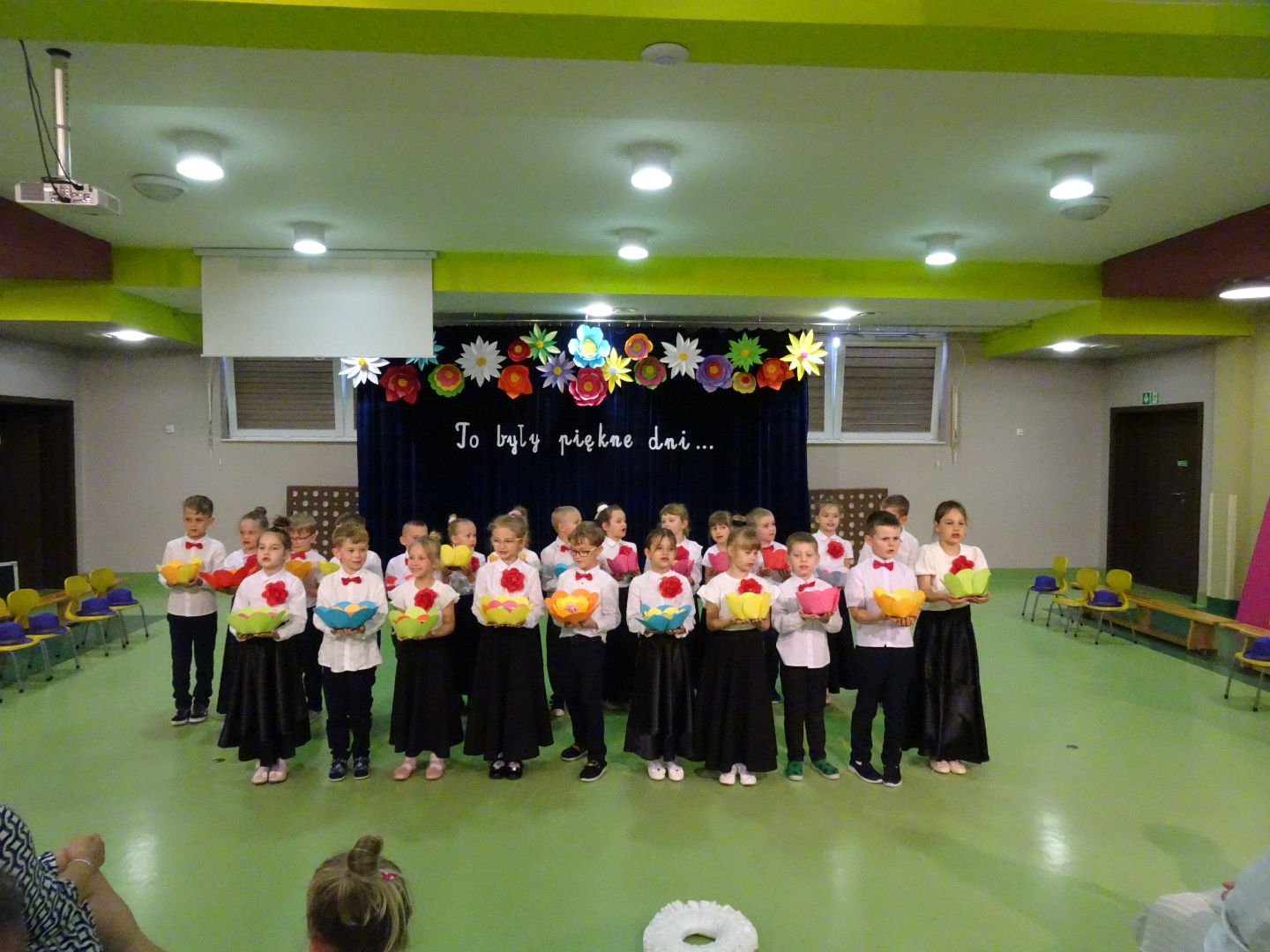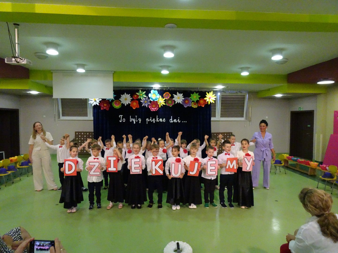 Za kilka dni Ananasy pofruną ku nowej przygodzie, pożegnali uroczyście swój pobyt w przedszkolu. Było pięknie, wzruszająco ale też radośnie i wesoło. Dzieci wspaniale sobie poradziły bo to już starszaki a nie maluszki, które przed laty na tej scenie dały swój pierwszy niesforny występ. Za nami cztery lata wspólnej zabawy, nauki, zmagań, rozmów problemów, czasem i kłótni, wspólnie rozwiązywanych zadań. To były lata bycia ze sobą, nawzajem siebie poznawania, wspólnych posiłkow, zabaw w ogrodzie, czasem łez ocierania. Dziękujemy wszystkim, którzy przyczynili się do wychowania i rozwoju tych dzieci, za pomoc, serce i opiekę. A my panie wychowawczynie życzymy samych sukcesów na szkolnej drodze!!