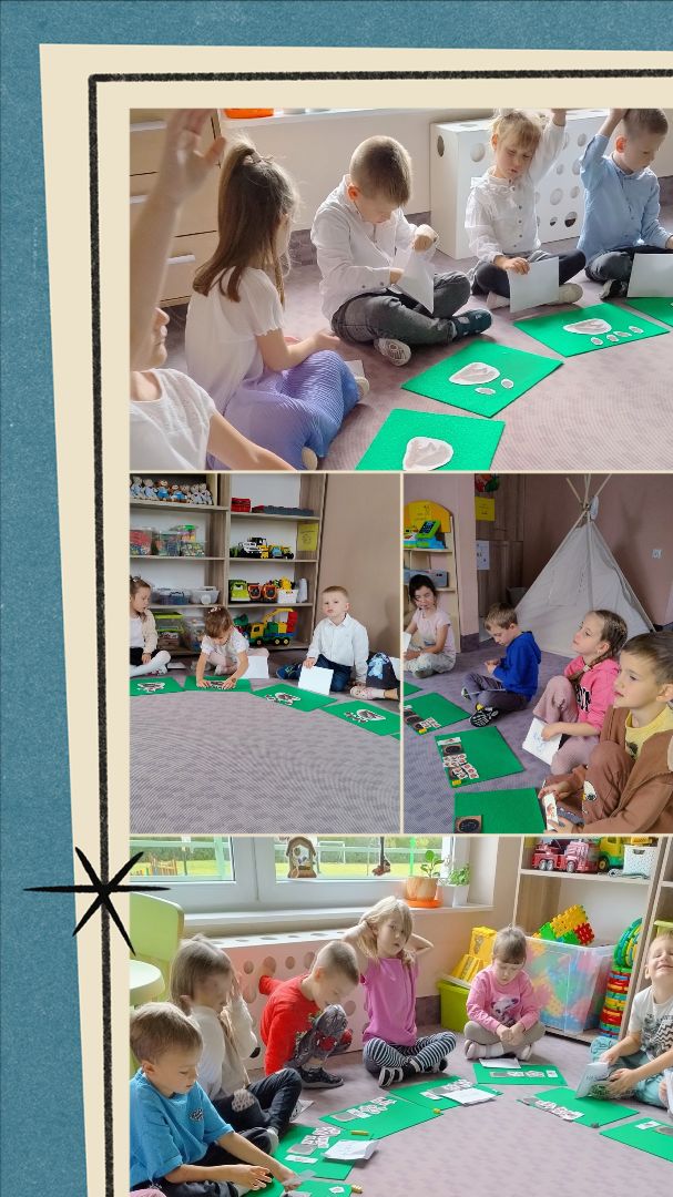 👉 Nasz wspólnie spędzony czas krążył również wokół  zagadnień i  zabaw jesiennych. Dzieliliśmy się wiedzą dotyczącą czasu trwania jesieni, jej oznak. Poszerzaliśmy wiadomości na temat lasu 🍁🍁🍁 oraz jego mieszkańców.🦊🐻🐰