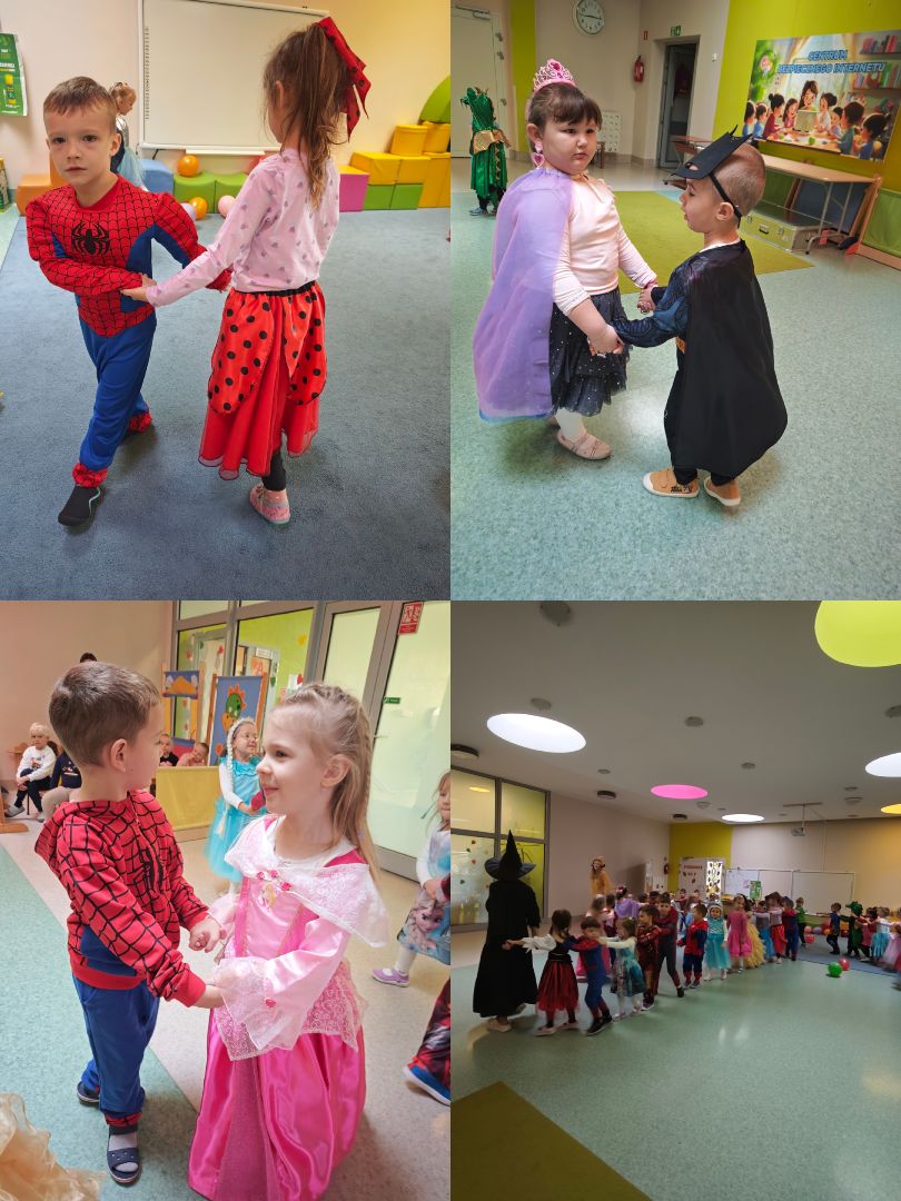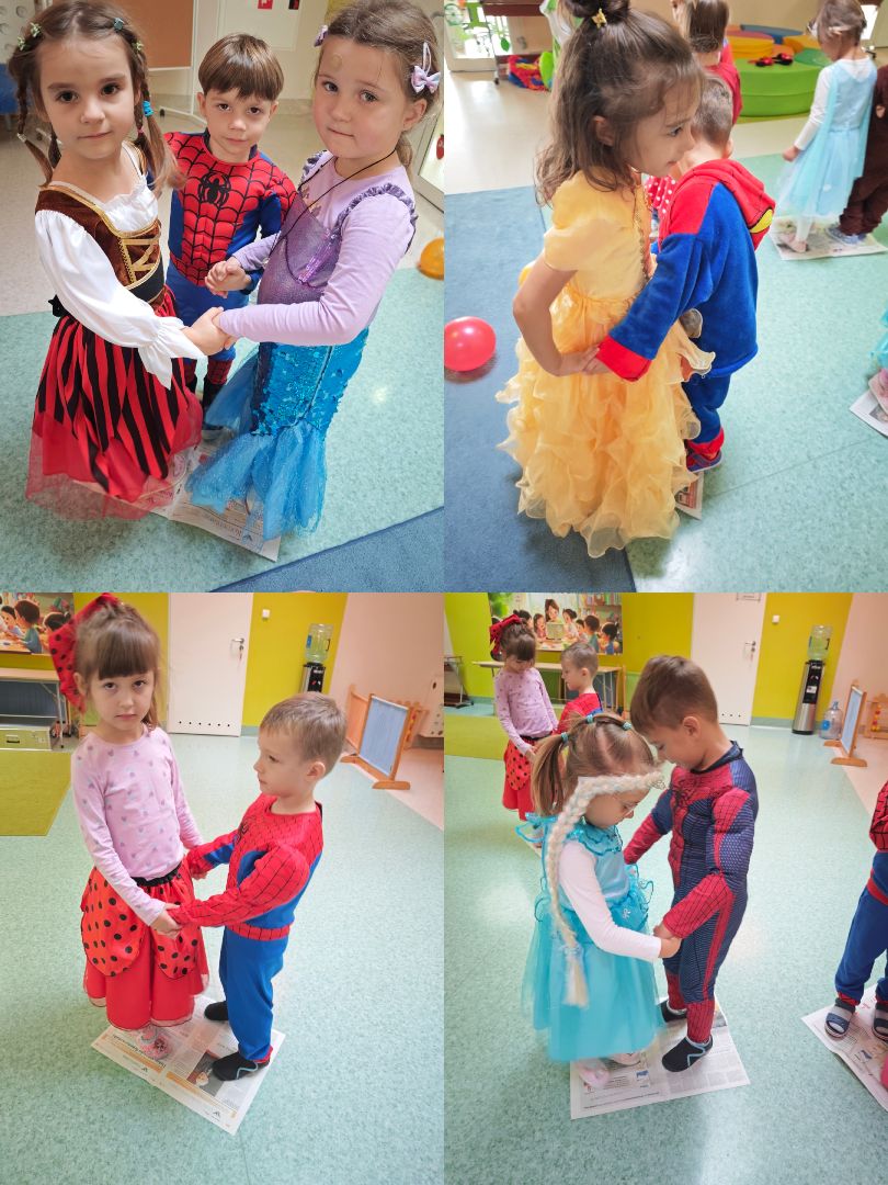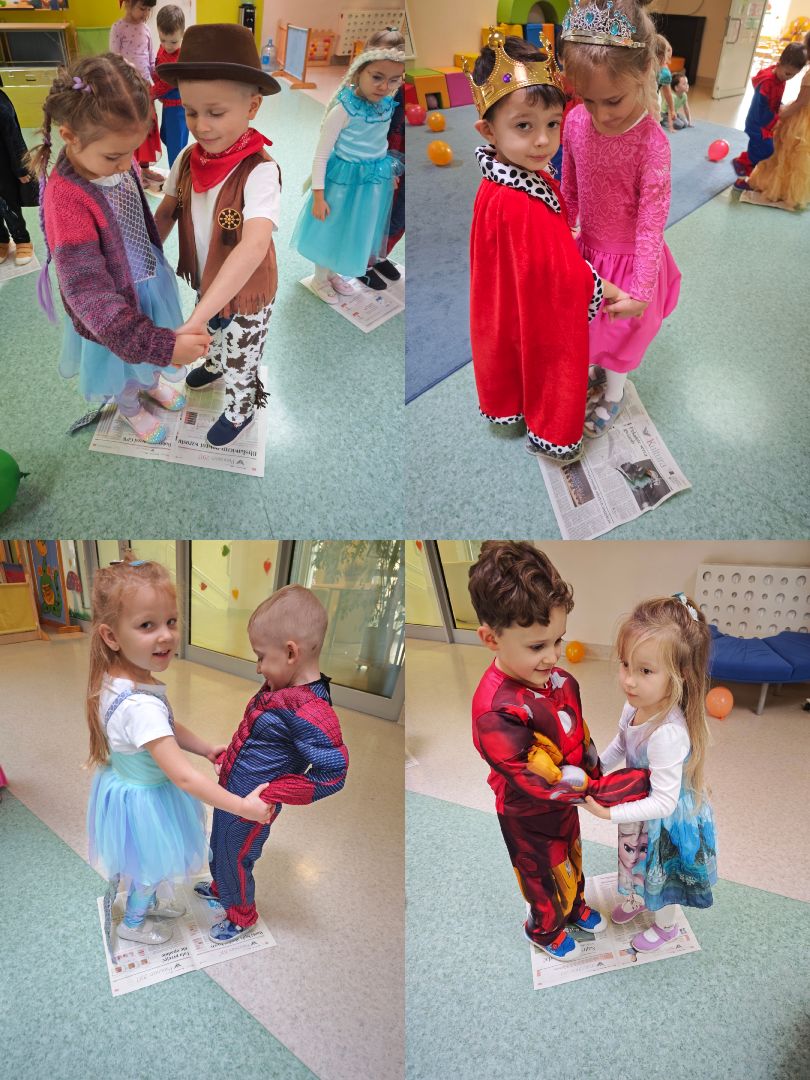 W pierwszej połowie listopada realizowaliśmy treści programowe wspierające rozwój dzieci w obszarach społecznych, językowych i poznawczych: „Jak przekazujemy informacje?” oraz „Kocham Moją Ojczyznę”. Czas ten obfitował również w niezwykłe wydarzenia: „ Bal Postaci z bajek” wspólny z gr. III „Limonki”, kiedy to dzieci przeniosły się w świat ulubionych bohaterów literackich; były tańce i zabawy muzyczne, które dostarczyły przedszkolakom wiele radości, a także zachęciły do sięgania po książki z ulubionymi bohaterami. Byliśmy na wycieczce w Narodowym Banku Polskim, gdzie dzieci poznały historię polskiego pieniądza i zobaczyły pamiątkowe monety i banknoty. Wraz z całą społecznością przedszkolną Arbuzy wzięły udział w akcji „Szkoła do Hymnu”. O godz. 11.11 (w piątek 7 listopada) wszyscy wspólnie i uroczyście odśpiewali „Mazurka Dąbrowskiego”, pokazując swoją postawą szacunek dla symboli narodowych oraz polskiej historii. W kolejnym tygodniu wzięliśmy udział w uroczystości przedszkolnej „Patriotyczne śpiewanie”. Wydarzenie to wzbudziło u przedszkolaków poczucie dumy i radości z bycia częścią naszej Ojczyzny.