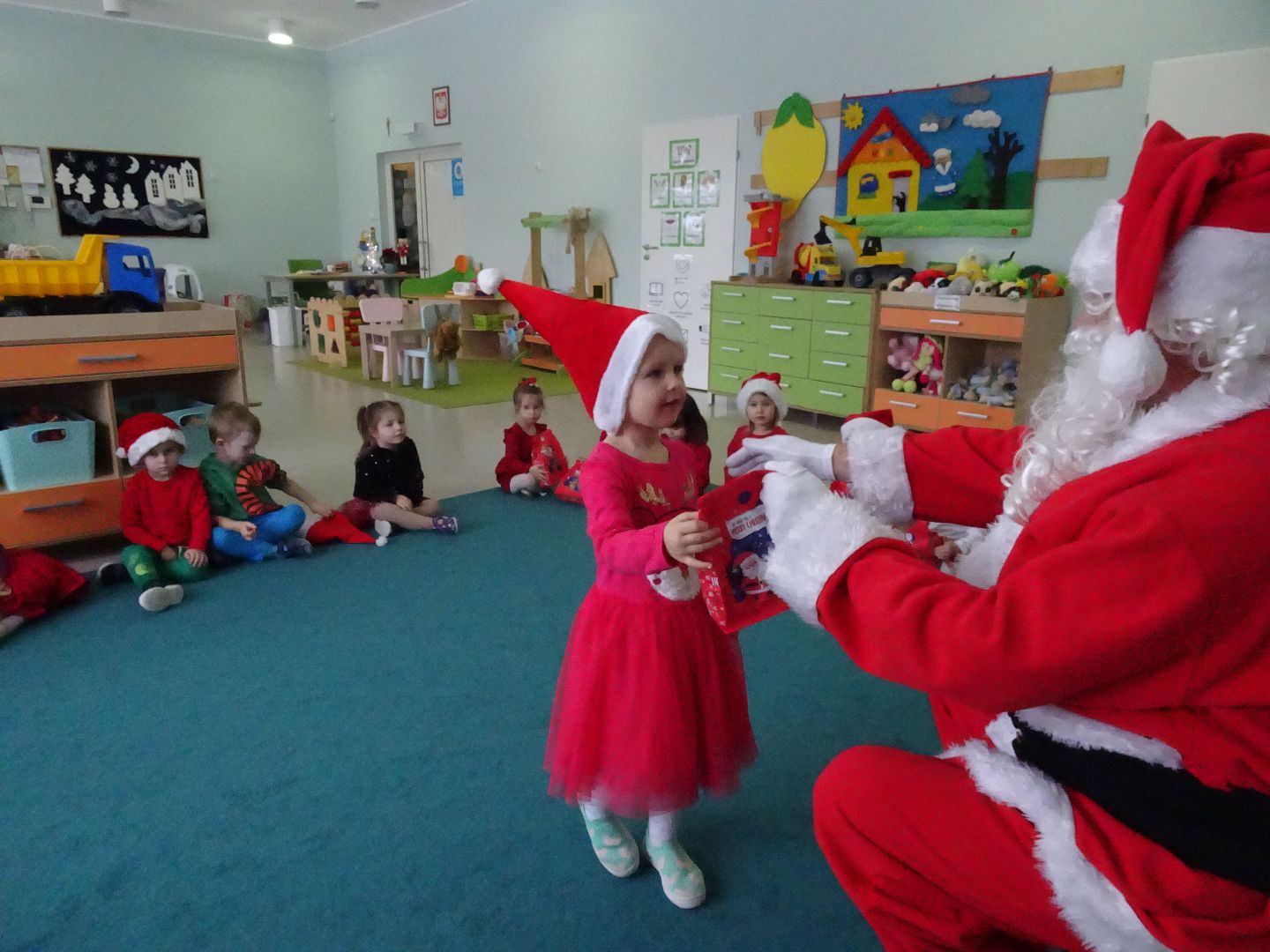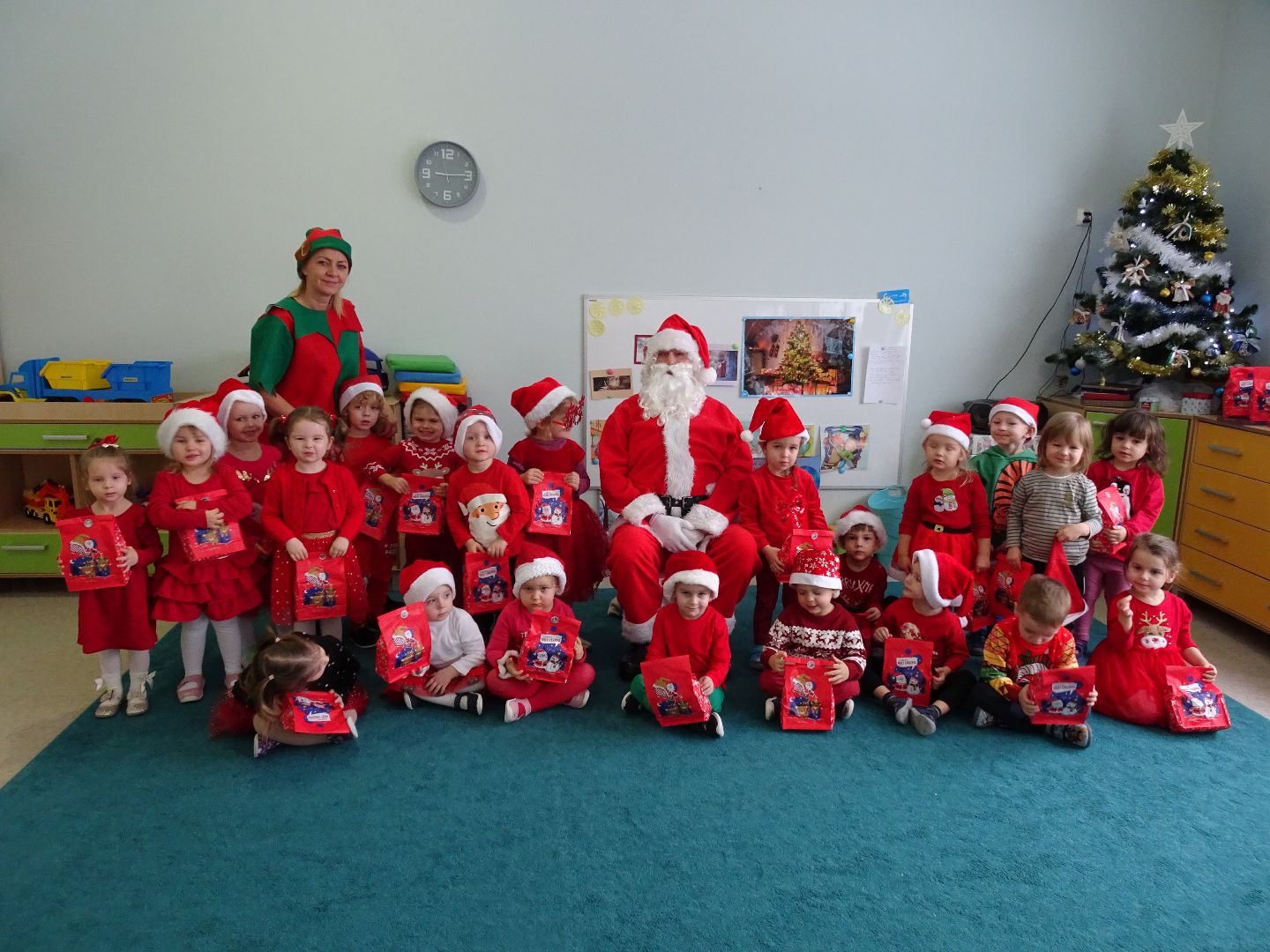 Jedzie święty Mikołaj białą brodą świeci worek z prezentami ma dla grzecznych dzieci. Dziś w przedszkolu dzieci spotkały Świętego Mikołaja, który przybył do nas z daleka i ofiarował wszystkim prezenty.Było bardzo czerwono, wesoło, muzycznie i radośnie. Dziękujemy Mikołaju za wszystkie niespodzianki :)
