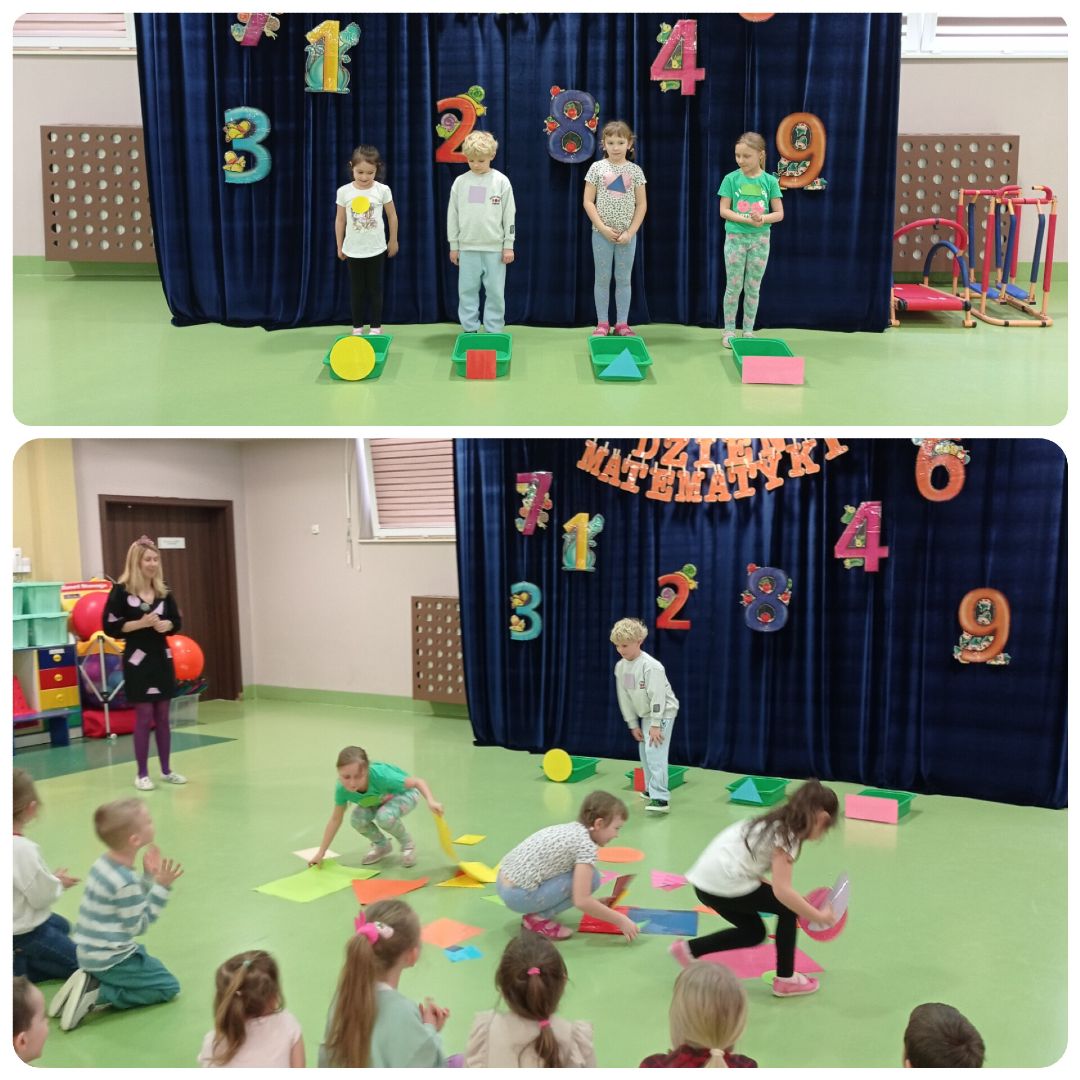 13 marca świętowaliśmy w naszym przedszkolu Dzień Matematyki. Najstarsze grupy: Mandarynki, Poziomki, Ananasy i Kokosy wspólnie bawiły się i wykonywały zadania matematyczne t.j.: