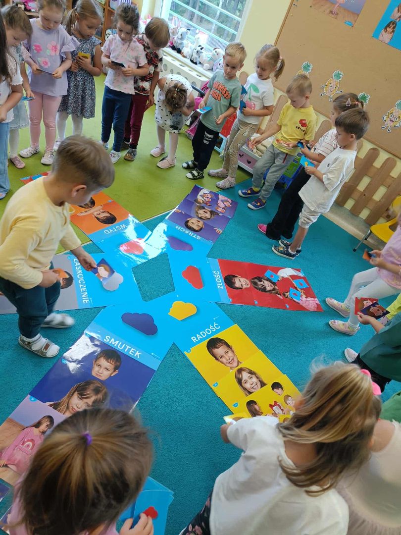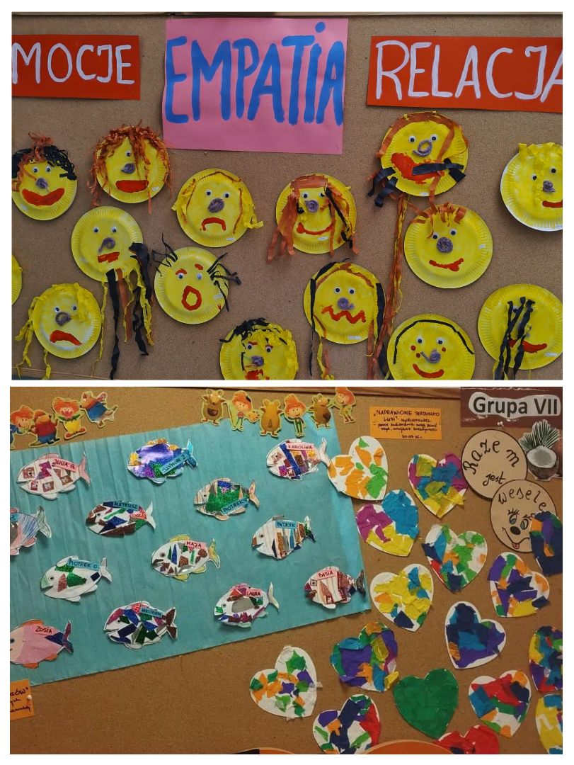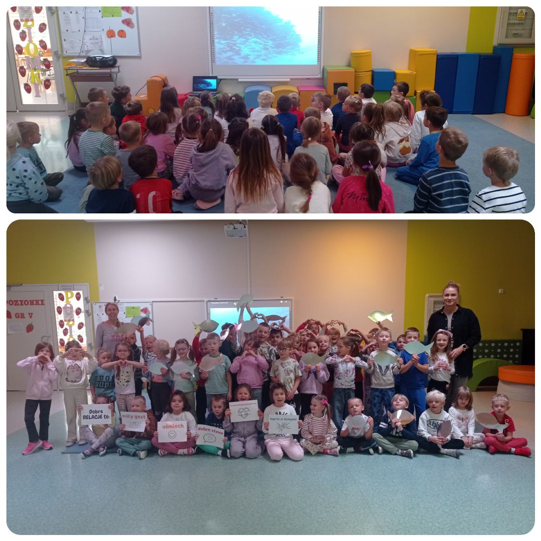 W ramach tego tygodnia zaplanowaliśmy dla dzieci szereg specjalnych zajęć i warsztatów, które pomogły im: rozwijać wrażliwość na potrzeby innych i empatię, nazywać i wyrażać emocje oraz rozmawiać o tym, czego potrzebują, znajdować pokojowe sposoby na rozwiązywanie sporów i trudności, tworzyć przyjazną i wspierającą atmosferę opartą na życzliwości. Przedszkolaki słuchały ,,Opowiadania o Jeżyku Roro'', które uświadomiło im, że pewne zachowania mogą ranić innych. Stworzyły prace plastyczne ,,Serduszko z listków'' - może nie z listków, ale z metaforycznych dobrych słów, bo każdy element serduszka to przykład zachowania, które ma siłę pokonywać trudności i okazywać wsparcie. Uczyły się piosenki ,,Co czuję dziś?''. Odbyły się zajęcia koleżeńskie z okazji Międzynarodowego Dnia Empatii oraz uroczystości grupowe z okazji Dnia Uśmiechu, na podstawie książki ,,Opowieści o prawach dziecka'' M.Michalak. Odbyły się też zajęcia koleżeńskie ,,W ławicy ryb'' o budowaniu relacji w grupie, poczucia bezpieczeństwa i przynależności do grupy. Dzieci młodsze wspólnie oglądały teatrzyk sylwetowy, podczas których rozwijały umiejętność określania zachowań życzliwych i nieżyczliwych w stosunku do rowieśników. Przedszkolaki uczestniczyły w zabawach związanych z emocjami, rozwijających umiejętności społeczne, zwiększających świadomość doświadczanych przez dzieci emocji. Natomiast w zabawach tanecznych dzieci poznawały sposoby radzenia sobie ze złością, zaś w zabawach rytmiczno - ruchowych uczyły się budować życzliwe i bezpieczne relacje z innymi. W zabawach matematycznych z elementem kodowania dzieci kształtowały świadomość posiadania własnych praw, poznały zasady bezpiecznych relacji z rówieśnikami i osobami dorosłymi.