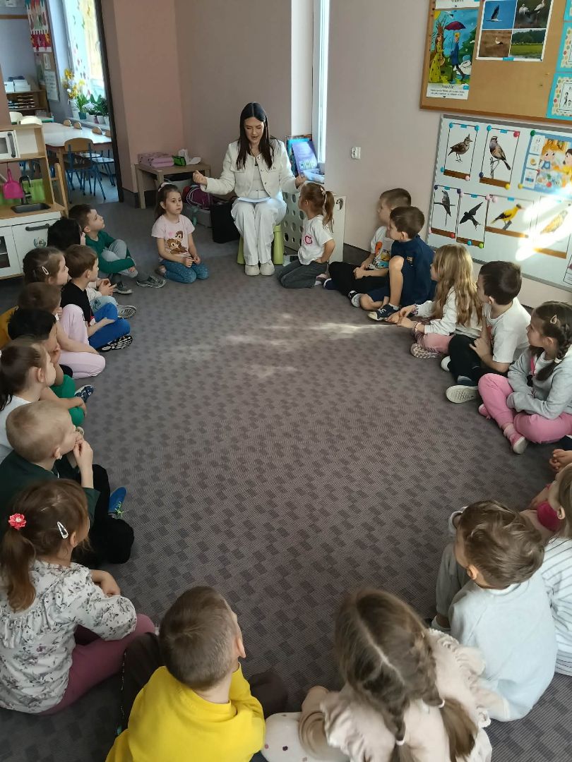 10.03.2026 r. w ,,Brzoskwiniowym Raju'' obchodziliśmy Dzień Logopedy. Z tej okazji Pani Natalia, logopeda w naszym przedszkolu, odwiedziła wszystkie grupy, aby opowiedzieć dzieciom o swojej pracy. Podczas spotkań przedstawiła zawód logopedy oraz wyjaśniła, na czym polega jego rola i w jaki sposób pomaga dzieciom i dorosłym w prawidłowym mówieniu. Przedszkolaki dowiedziały się, dlaczego warto ćwiczyć buzię, język i oddech oraz jak ważna jest wyraźna wymowa. Najwięcej radości sprawiły dzieciom wspólne zabawy logopedyczne. Pani Natalia przygotowała ćwiczenia w formie opowieści o misiu, dzięki czemu dzieci poprzez zabawę wykonywały różne zadania usprawniające aparat mowy. Dzieci z dużym zaangażowaniem uczestniczyły w zabawach i chętnie wykonywały wszystkie ćwiczenia. Była to ciekawa i pouczająca lekcja, dzięki której przedszkolaki mogły lepiej poznać pracę logopedy.