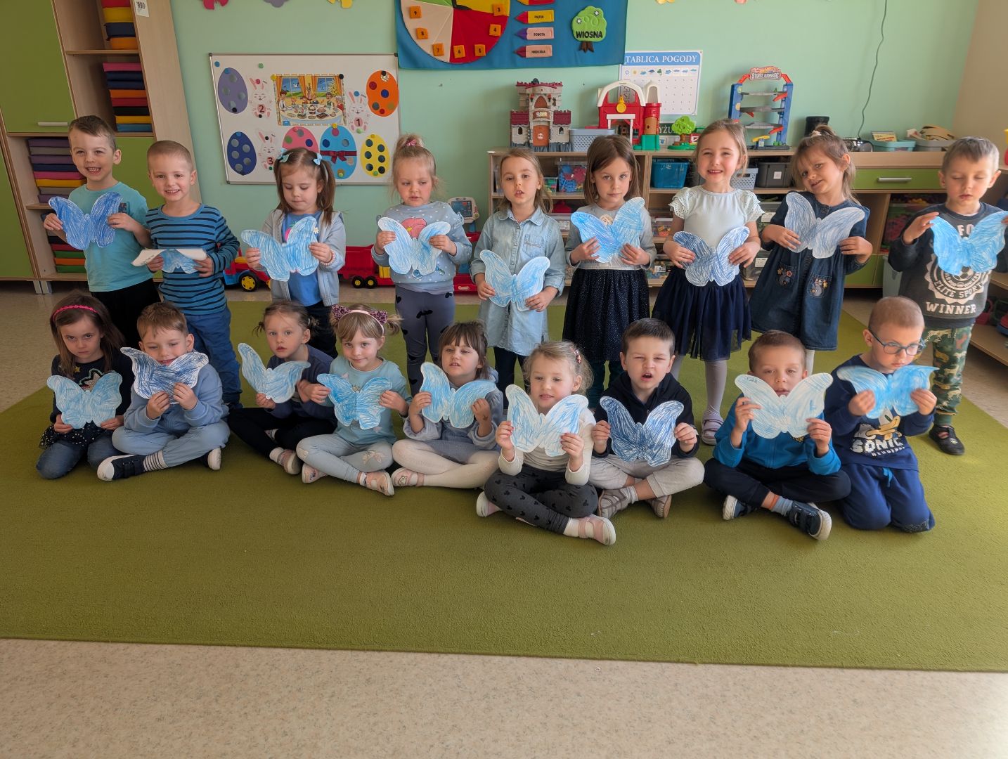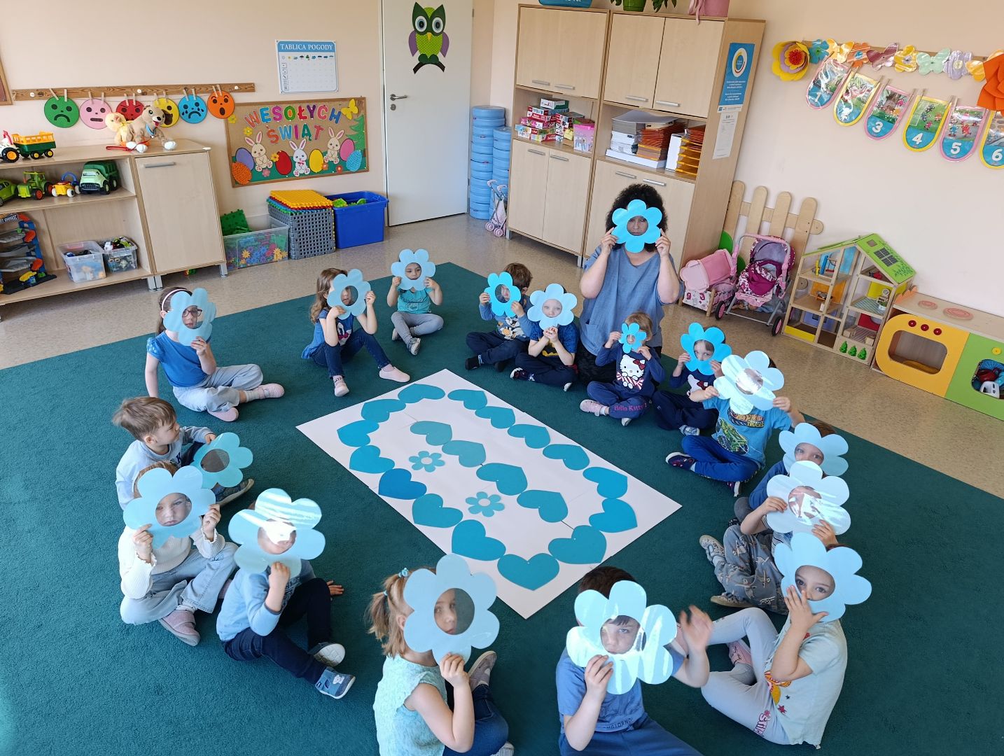 2 kwietnia w naszym przedszkolu odbyły się wyjątkowe obchody Światowego Dnia Świadomości Autyzmu. Tego dnia wszystkie grupy przyszły ubrane na niebiesko, okazując w ten sposób solidarność i wsparcie dla osób w spektrum autyzmu. Niebieski kolor dominował w salach, dekoracjach oraz wspólnych aktywnościach, tworząc atmosferę jedności i zrozumienia.